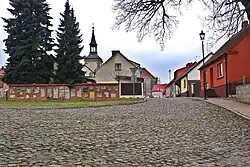 - Kościół protestancki zbudowany został w 1900 w stylu neoromańskim z fundacji Heinricha Burgharda Abegga. Zastąpił on wcześniejszą świątynię, rozebraną wkrótce po konsekracji nowego kościoła (najstarszy kościół pochodził prawdopodobnie z 1635). Kościół został zamknięty w 1945 po opuszczeniu parafii przez ludność protestancką (pochodzenia niemieckiego) i rozebrany w latach siedemdziesiątych XX wieku.
