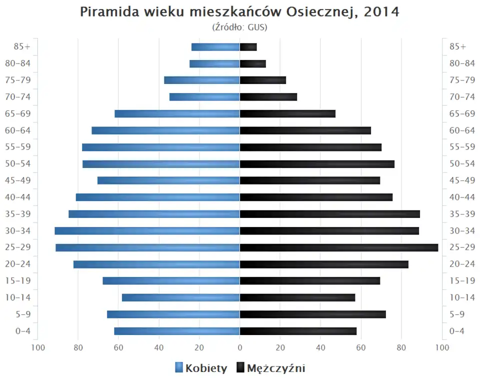 - Piramida wieku mieszkańców Osiecznej w 2014 roku[3].