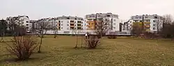 Osiedle w pierwszej fazie zajęło około 4,2 ha i składało się z dwudziestu bloków. W 2001 dokupiono dalsze tereny (1,4 ha) i rozbudowano jednostkę o kolejne domy wielorodzinne. Oprócz tego na terenie dzielnicy funkcjonuje niewielka liczba punktów handlowych i poczta.