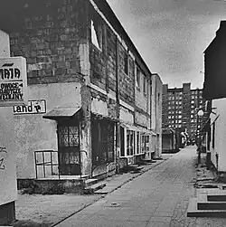 zespół sklepów przy ul. Chełmońskiego - na parterze znajdowały się: supersam (w tym miejscu obecnie ulokowana jest szkoła języków obcych), punkt naprawy odtwarzaczy radiowych oraz Osiedlowy Klub "U Szefa",