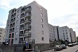 ![]() Bloki przy ul. M. Rataja, biurowiec przy ul. S. Kossutha, widok ogólny od strony południowo-wschodniej, kościół parafialny parafii Podwyższenia Krzyża Świętego i św. Herberta, bloki przy ul. S. Kossutha | |