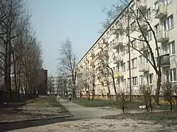 Osiedle zabudowane w technologii wielkiej płyty w latach 70.