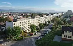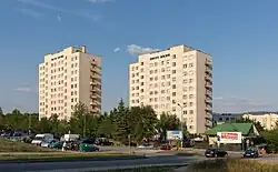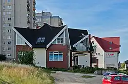 Jest to współczesne, wielkopłytowe osiedle, kontrastujące ze starą architekturą miasta. Stoją tu m.in. pięciokondygnacyjne, wieloklatkowe budynki mieszkalne, jedenastokondygnacyjne wieżowce – punktowce. Osiedle jest typowym przykładem nowej dzielnicy miejskiej, pomyślane jako autonomiczny organizm z pełną infrastrukturą[24].