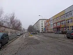 - przy ulicy Prostej: 2, 4, 6 (mieszkalny), 8, 10, 12, 14 (mieszkalny), 16 (szkoła)[73][103][128][132],