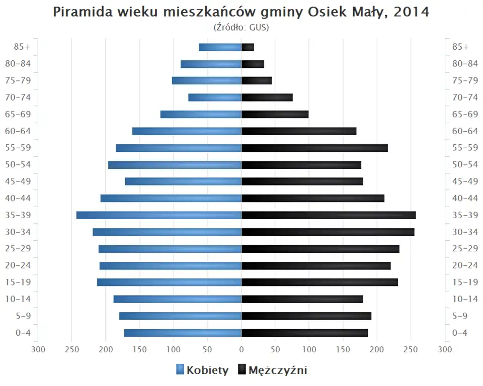 - Piramida wieku mieszkańców gminy Osiek Mały w 2014 roku[1].