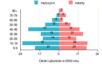 Współczesna struktura demograficzna osady Osieki Lęborskie na podstawie danych z lat 1995–2009 według roczników GUS-u, z prezentacją danych z 2002 roku[2]: