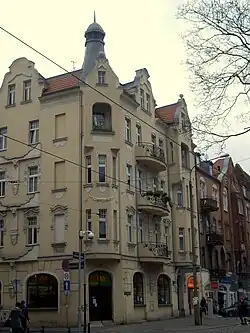 - Dom na rogu ul. Wyspiańskiego 4 i ul. Chełmońskiego (dawniej Hardenberga i Helmholtza)