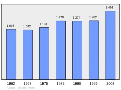 Według danych na rok 1990 gminę zamieszkiwały 1274 osoby, a gęstość zaludnienia wynosiła 74 osoby/km² (wśród 1545 gmin Langwedocji-Roussillon Osséja plasuje się na 286. miejscu pod względem liczby ludności, natomiast pod względem powierzchni na miejscu 459.).
