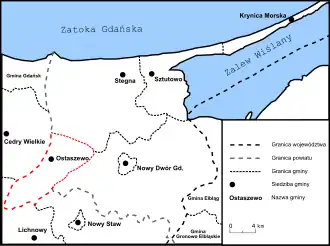 Ostaszewo – gmina wiejska w województwie pomorskim, w powiecie nowodworskim. W latach 1975–1998 gmina położona była w województwie elbląskim.