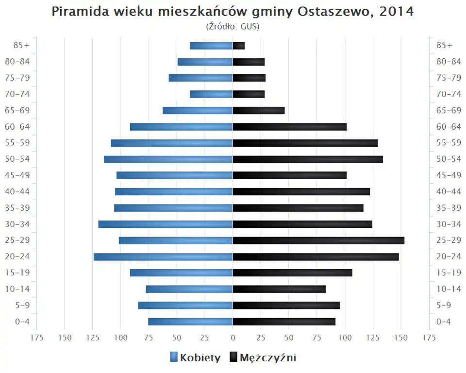 - Piramida wieku mieszkańców gminy Ostaszewo w 2014 roku[1].