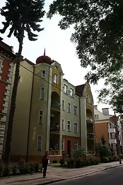 - Dom przy ul.Sienkiewicza 10. Obok po lewej na kamieniu tablica pamiątkowa gdzie urodził się światowej sławy pisarz Hans Helmut Kirst.(1914-1989).