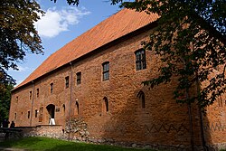 - Zamek krzyżacki pierwotnie w stylu gotyckim, następnie kilkakrotnie przebudowywany. Pochodzi z XIV w. i był siedzibą komturstwa krzyżackiego. Od 1977 roku odbudowywany po zniszczeniach spowodowanych wojną[19],