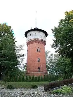 - Neogotycka komunalna wieża ciśnień pochodząca z przełomu XIX i XX w. (ul. Drwęcka)[19].