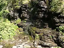 , z których największy, a zarazem główny (cz. Velký vodopád) położony jest na wysokości około 1130 m n.p.m. i ma wysokość 7,9 m. Pod głównym wodospadem są mniejsze stopnie i kaskady na długości około 40 m i różnicy wysokości około 10 m. Następnie na wysokości około 1080 m n.p.m. znajduje się system 3 wodospadów na łącznej długości około 8 m i różnicy wysokości około 4 m. Wreszcie niżej położony jest wodospad najniższy o wysokości około 1,5 m[21]. W odległości około 640 m na południowy zachód od szczytu, na wysokości około 1093 m n.p.m. występuje źródło o nazwie Pramen u vodopádů[22].