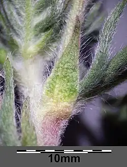 - Roślina wysokości do 30 cm, cała gęsto, odstająco owłosiona długimi, białymi włoskami. Pęd nadziemny wyrasta z rozgałęzionego kłącza. Skupione pędy tworzą zwykle kępy.