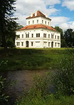 W miejscu starszej, drewnianej rezydencji letniej Juliusza Henryka (księcia Saksonii-Lauenburga), w latach 1673–1679 Juliusz Franciszek (książę Saksonii-Lauenburga) wybudował nowy obiekt, według projektu Abraháma Leuthnera. Przebudowę wnętrz zakończono w 1683 roku. Samodzielna budowla ma podstawę kwadratu i posiada altanową nadbudówkę (która stanowi drugie piętro budynku). Każda z czterech ścian posiada portal wejściowy. Okna są oddzielone pilastrami, na parterze boniowanymi, a na piętrze gładkimi, zwieńczonymi głowicami toskańskimi. Pod gzymsem przebiega fryz z tryglifami. W przestrzeni nad oknami umieszczono prostokąty z motywem diamentu. W środku obiektu znajduje się sala, sięgająca piętra z malowidłami iluzjonistycznymi i alegorycznymi postaciami. Na parterze sala ma kształt ośmioboku z wnękami w kształcie grot z sadzawkami. Na piętrze znajdują się balkony z balustradami, prowadzące do poszczególnych pomieszczeń. Wnętrze przebudował w 1692 roku Domenico Egidio Rossi. Pomieszczenia mają sklepienie nieckowe i stiukową dekorację. Rezydencja jest własnością Państwa, mieści się w niej Galeria Sztuki (Galerie umění).
