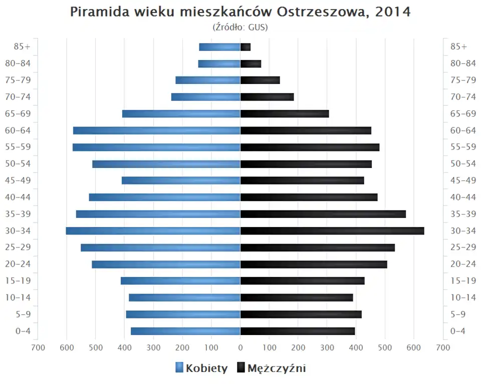 - Piramida wieku mieszkańców Ostrzeszowa w 2014 roku[10].