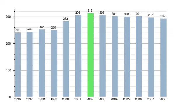Według danych z dnia 31 grudnia 2012, wieś zamieszkiwały 304 osoby, w tym 150 kobiet i 154 mężczyzn[6].