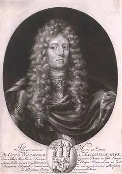 - ↑ Heinz-Joachim Schulze: Königsmarck, Otto Wilhelm Graf von. In: Neue Deutsche Biographie (NDB). Band 12, Duncker & Humblot, Berlin 1980, ISBN 3-428-00193-1, S. 361 f. (Digitalisat).