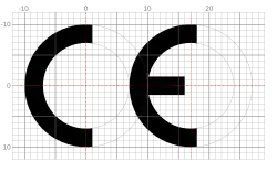 - Oznakowanie CE musi być wielkości co najmniej 5 mm; jeżeli jest powiększone, jego proporcje muszą zostać zachowane (por. zał. II Rozporządzenia 765/2008/WE),