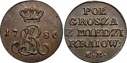 Po blisko 200 latach przerwy półgrosz powrócił w czasie reformy monetarnej z 1766 r., w początkowym okresie panowania Stanisława Augusta Poniatowskiego – w postaci miedzianej o masie 1,95 grama – pełniąc wyłącznie funkcje zdawkowe[3].