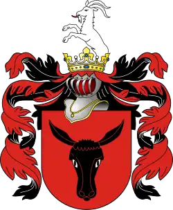 Ośla głowa srebrna w czerwonym polu; spotykana głównie w Wielkopolsce[2].