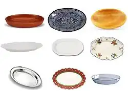 - do mięs i wędlin[2] stosuje się podłużne, ale nieco szersze półmiski,