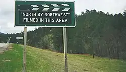 Gdy ekipa zakończyła zdjęcia w Chicago, produkcję przeniesiono do Rapid City w Dakocie Południowej i w rejon góry Mount Rushmore znajdującej się w rezerwacie Black Hills[60][62]. Początkowo ekipie wydano zgodę na realizację ujęć na terenie rezerwatu, lecz wkrótce Departament Zasobów Wewnętrznych Stanów Zjednoczonych cofnął decyzję po tym, jak miejscowy dziennikarz opublikował artykuł opisujący, w jaki sposób Hitchcock planował przeprowadzenie gwałtownego pościgu po twarzach prezydentów. W artykule zamieszczono również zdjęcie papierowej serwetki, na której reżyser dokładnie rozrysował trasę pościgu[63]. Wobec odmowy Hitchcock nakazał wytwórni zbudowanie dokładnej kopii, co było znacznie korzystniejsze, zwłaszcza jeśli chodzi o utrwalenie dźwięku i oświetlenie scen[41]. W obrębie Mount Rushmore ekipa zrealizowała kilka ujęć, w tym rozmowę „profesora” z Thornhillem i przybycie Vandamma, Leonarda i Kendall[62]. „Z powodu sprzeciwu rządu, nie mogliśmy mieć żadnej postaci na twarzach, nawet na ujęciach realizowanych wewnątrz studia. Powiedziano nam bardzo wyraźnie, żeby kamera jedynie prześlizgiwała się pomiędzy wizerunkami prezydentów. W końcu, jak twierdzili, jest to świątynia demokracji” – wspominał w późniejszym czasie reżyser[l][60].