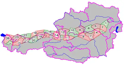 (kolorem fioletowym zaznaczono granice państw oraz austriackich krajów związkowych)