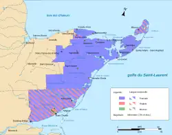 Ludność półwyspu jest w ok. 95% francuskojęzyczna (odmiana akadiańska). Angielskiego używa się przede wszystkim na południu, okolice doliny rzeki Miramichi są dominująco anglojęzyczne. Ponadto ok. 6% ludności Saint-Léolin i Miscou jest anglojęzyczne.