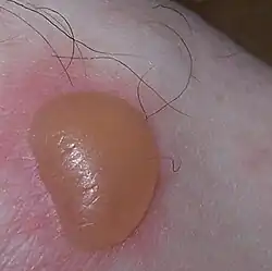 - podnaskórkowe – płyn gromadzi się pod warstwą naskórka, jak ma to miejsce w pemfigoidzie. Dno takiego pęcherza stanowi skóra właściwa. Są one dobrze napięte, twarde, trudno ulegają zerwaniu z pozostawieniem głębokich nadżerek;