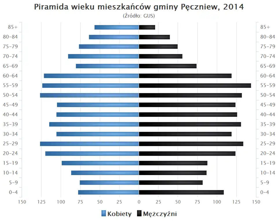- Piramida wieku mieszkańców gminy Pęczniew w 2014 roku[1].