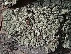 - Listkowata i zazwyczaj kolista, o średnicy 2–8 cm, ściśle przylegająca do podłoża, wznoszą się tylko jej końcowe, brzeżne odcinki. Często sąsiednie plechy zlewają się z sobą. Górna powierzchnia plechy ma barwę białawą, szarą lub ciemno szarą, jest matowa, gładka i płaska. Jest głęboko, dichonomicznie rozgałęziona, jej odcinki mają długość 5–15 mm, szerokość 0,3–1 mm i brzegami stykają się, lub nieco zachodzą na siebie. Końcowe odcinki plechy są równowąskie lub poszerzone, często odcinki te na obrzeżach plechy mają brązowawy kolor. Charakterystyczną cechą jest występowanie na górnej powierzchni dużych, główkowatych soraliów o białoszarej lub niebieskoszarej barwie. Powstają w nich proszkowate, matowe lub błyszczące urwistki urwistki. Soralia mogą być rozproszone, lub zlewać się z sobą tworząc duże skupiska. Dolna powierzchnia ma barwę od jasnobrązowej do ciemnobrązowej i znajdują się na niej krótkie, proste i ciemne chwytniki[4].