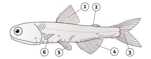 Budowa i rozmieszczenie płetw, a także liczba płetw nieparzystych stanowią istotne cechy zewnętrzne pomocne przy rozróżnianiu gatunków. W opisach stosuje się następujące zasady[4]: