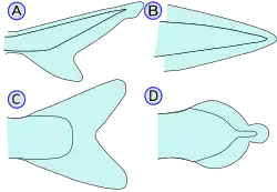 - dyficerkalna – przekształcona płetwa epicerkalna, w której szkielet osiowy dociera do samego końca ogona; wąskie, symetrycznie rozłożone płaty zwężające się ku tyłowi; występowała u wymarłych Xenacanthiformes, a współcześnie u dwudysznych;