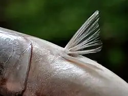 - ↑ Stewart et al. The origins of adipose fins: an analysis of homoplasy and the serial homology of vertebrate appendages. „Proceedings of the Royal Society B”. 281 (1781), 2014. DOI: 10.1098/rspb.2013.3120. (ang.).