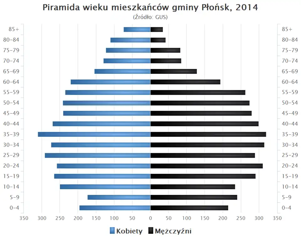 - Piramida wieku mieszkańców gminy Płońsk w 2014 roku[7].