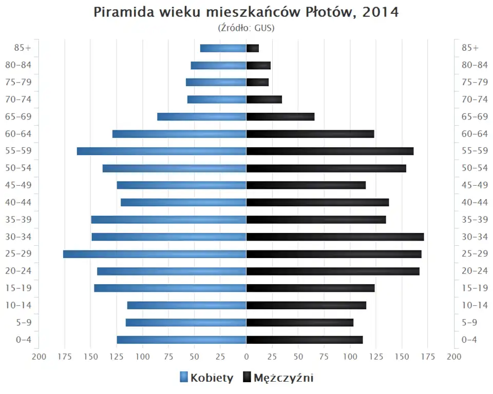 - Piramida wieku mieszkańców Płotów w 2014 roku[2].