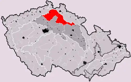 Od północnego zachodu graniczy z pasmem górskim Rudaw, od północnego wschodu z Sudetami, od południa z Płytą Środkowoczeską (czes. Středočeská tabule), a od południowego wschodu z Płytą Wschodnioczeską (czes. Východočeská tabule)
