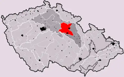 Od północy graniczy z Wyżyną Jiczyńską (czes. Jičínská pahorkatina), od wschodu z Płytą Orlicką (czes. Orlická tabule), od południowego wschodu i południa z Wyżyną Switawską (czes. Svitavská pahorkatina), od południowego zachodu z Górami Żelaznymi (czes. Železné hory), od zachodu z Płytą Środkowołabską (czes. Středolabská tabule).