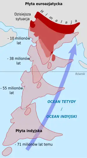 Rezultatem napierania na siebie płyt indyjskiej i azjatyckiej są najwyższe góry świata Himalaje.