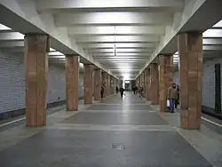 Typowa płytka stacja moskiewskiego metra posiada dwa rzędy kolumn równoległe do osi stacji wykonanych ze stali i betonu. Standardowo długość waha się od 102 do 169m, a odstęp między kolumnami od 4 do 6 metrów. Na przestrzeni czasu zmieniała się liczba kolumn od 40 (np. Profsojuznaja), poprzez 26 (np. Ulica 1905 Goda) do 22 (np. Bibiriewo).