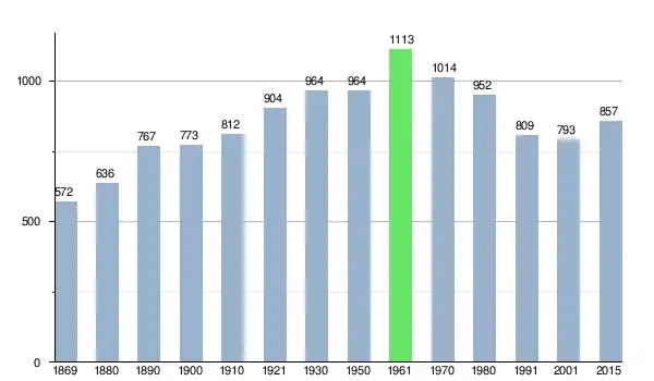 W 2014 zamieszkiwana przez 840 osób[9], a w 2015 przez 857 osób[10].