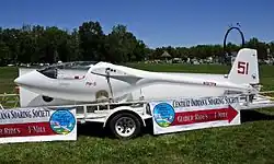 Jednomiejscowy wolnonośny średniopłat wykonany z laminatu szklano-epoksydowego[1][6][3].