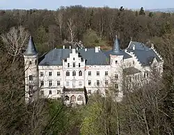 - 1 2 3 4 Romuald Łuczyński: Zamki, dwory i pałace w Sudetach. Legnica: Stowarzyszenie „Wspólnota Akademicka”, 2008, s. 6. ISBN 978-83-89102-63-8.