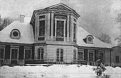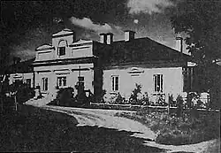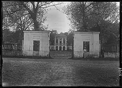 ![]() Pałac od strony bramy wjazdowej na widoku autorstwa Napoleona Ordy z lat 1875 –1877 | |