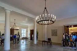 Podczas prac renowacyjnych z lat 2004–2005 westybul został przemalowany z koloru limonki na kolor jasnej ochry, co było pomysłem prezydenta Republiki Federalnej Niemiec Horsta Köhlera[3]. Po obu stronach drzwi do parku znajdują się obrazy. Obraz po lewej stronie, namalowany w 1920 roku przez Emila Orlíka, to portret pierwszego prezydenta Republiki Weimarskiej Friedricha Eberta, z kolei ten po prawej stronie, stworzony w 1952 roku przez Wolfa Röhrichta, przedstawia pierwszego prezydenta Republiki Federalnej Niemiec Theodora Heussa. Obraz ten jest wypożyczony z Forum Sztuki Galerii Wschodnioniemieckiej (niem. Kunstforum Ostdeutsche Galerie) w Ratyzbonie[14].