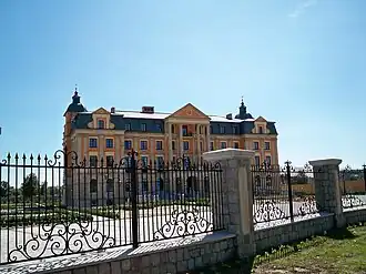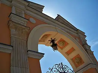 - Widok ogólny na Pałac i bramę