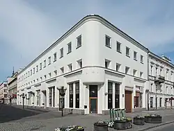 Lokale od strony Nowego Światu (po prawej stronie budynku) były wynajmowane na sklepy. Przez pewien czas mieściły się tu salony samochodowe, później – skład fabryki instalacji kuchennych Herzfeld i Victorius z Grudziądza. Nad nim lokal na pierwszym piętrze był wynajmowany na biura poznańskiego Towarzystwa Ubezpieczeń „Vesta”.