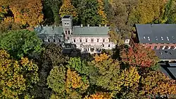 - ↑ Kwestią do wyjaśnienia pozostaje, czy mieściły się tu tylko biura komendantury, czy mieszkali tu też przedstawiciele dowództwa.